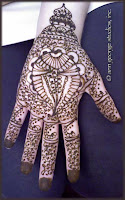 Here is the work of a very talented traditional artist. I love her use of bold lines & white space while creating a very full look for the palm of the hand. I just wnat to do more of this kind of art. Don't you want to have some traditional henna ??? I love this pattern. What you you think?
